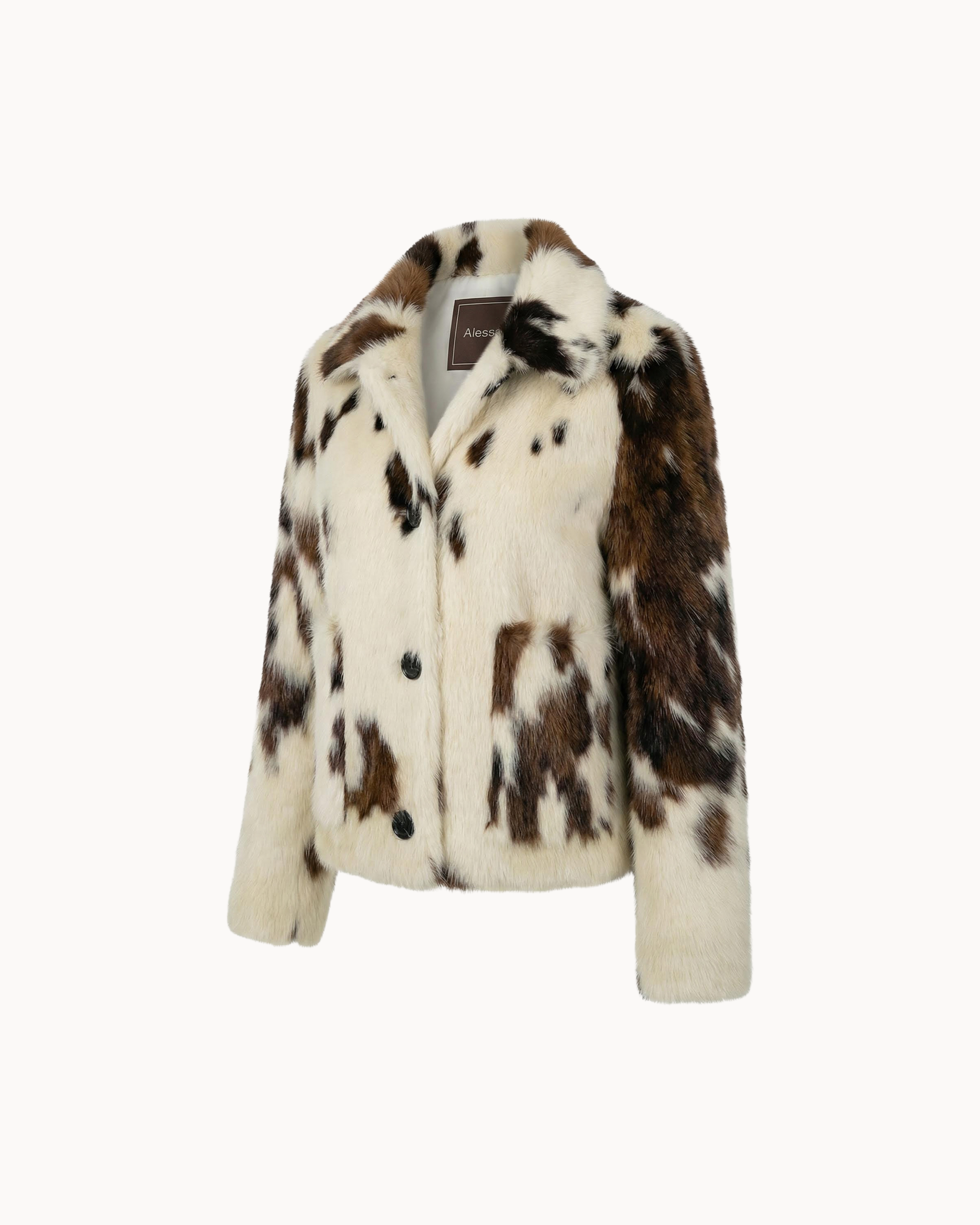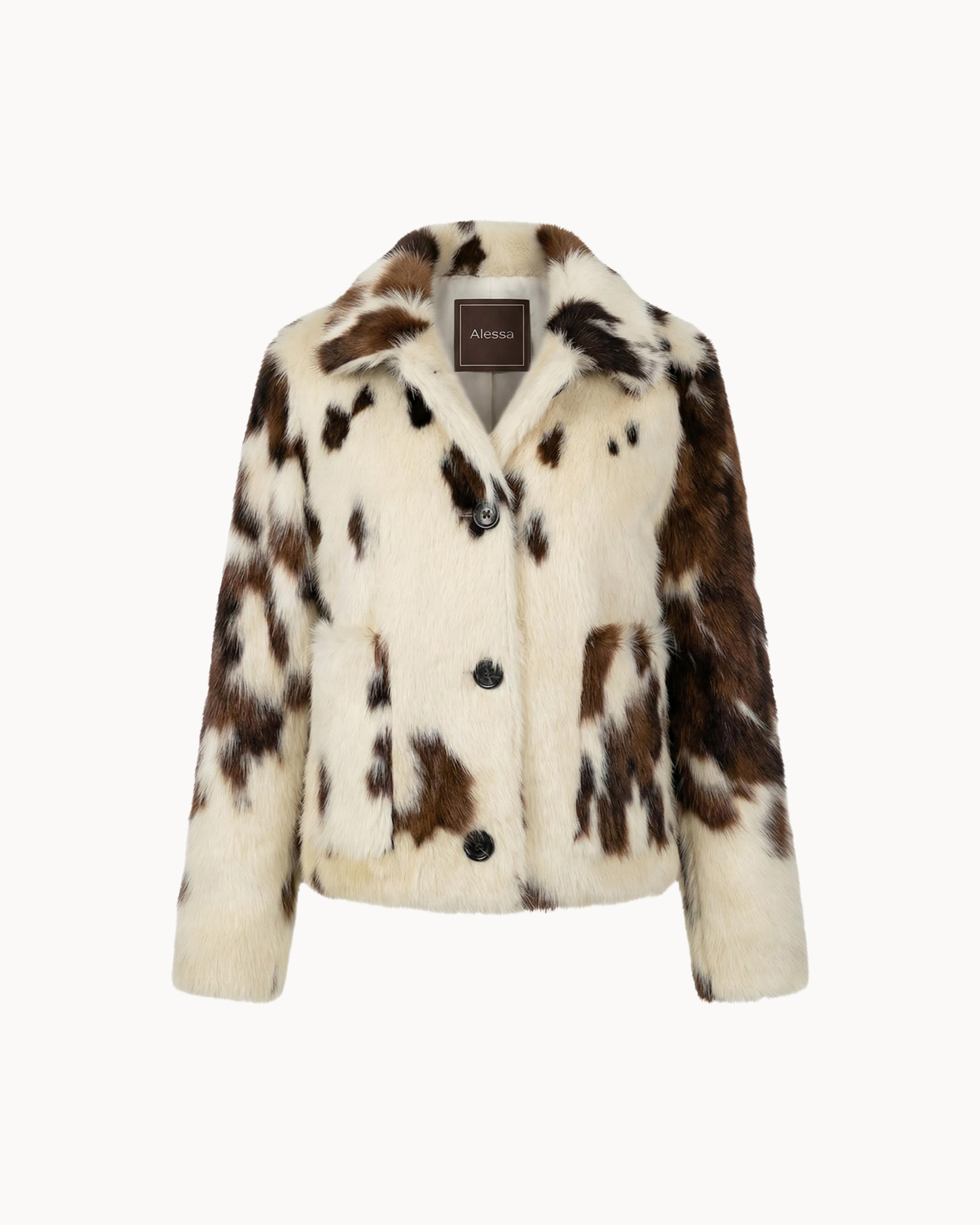 The Alessa Caldera Cowhide Jacket is crafted from genuine cowhide, selected for its distinctive natural markings and rich texture. Each jacket is entirely unique, making every piece a singular expression of craftsmanship and character.
