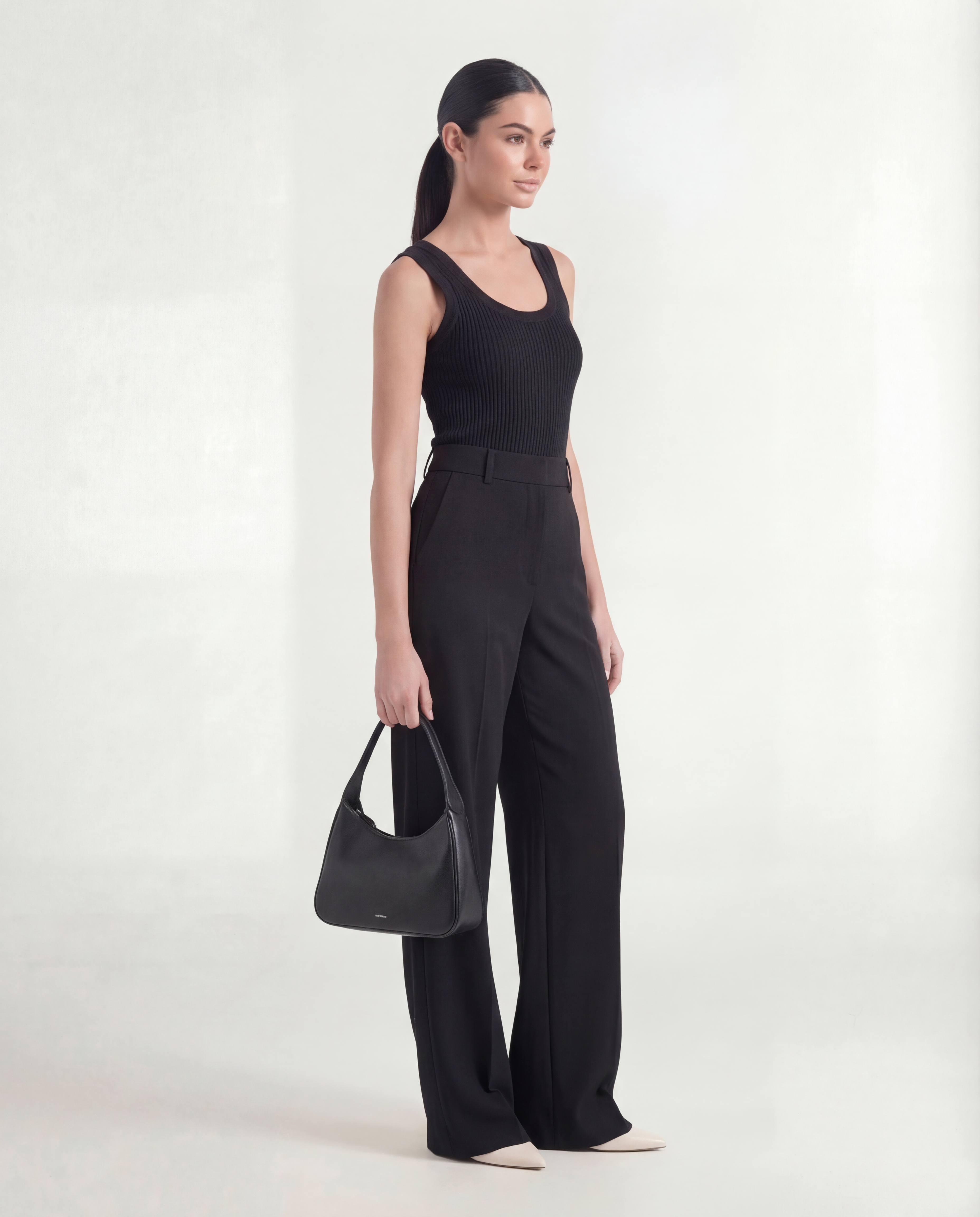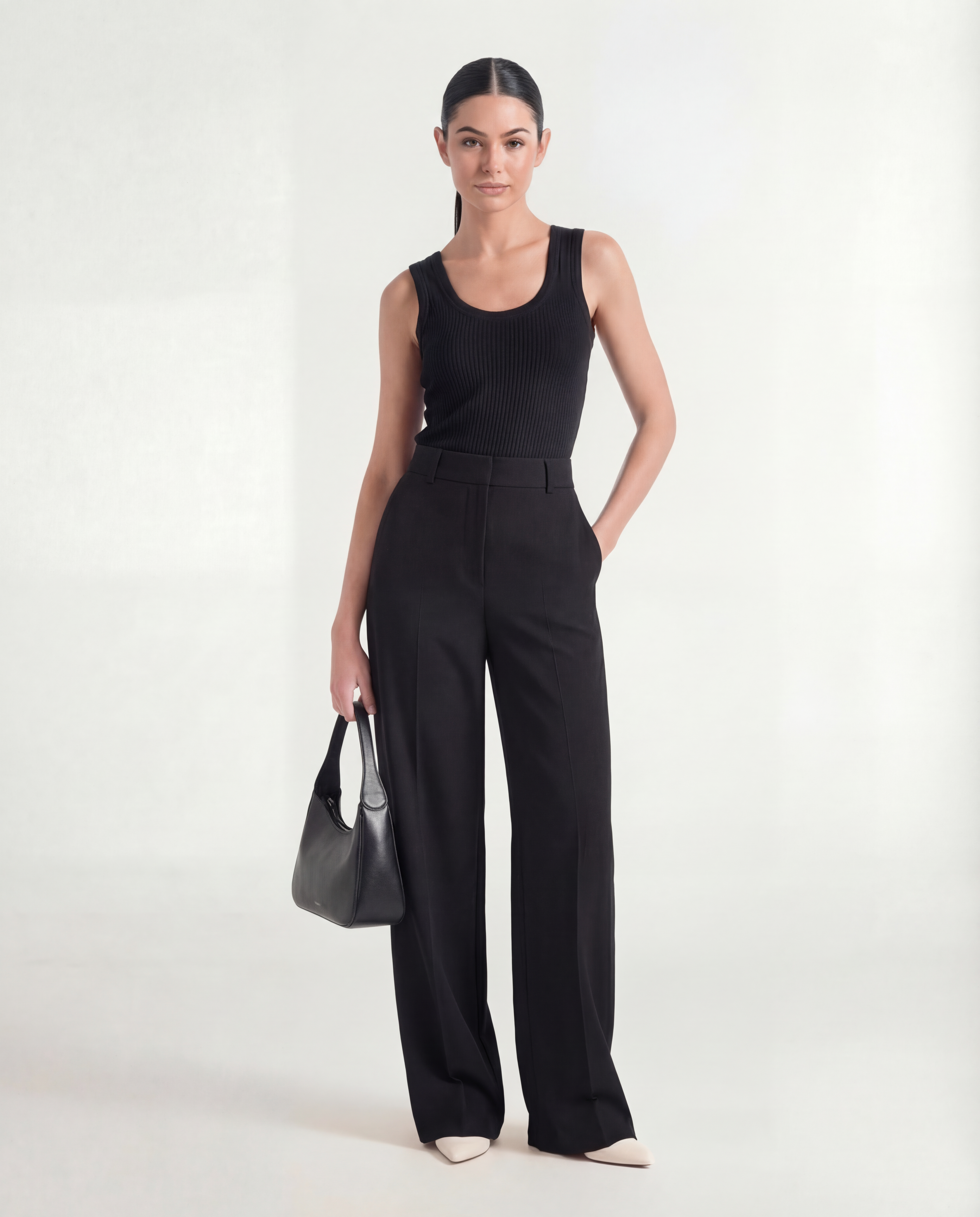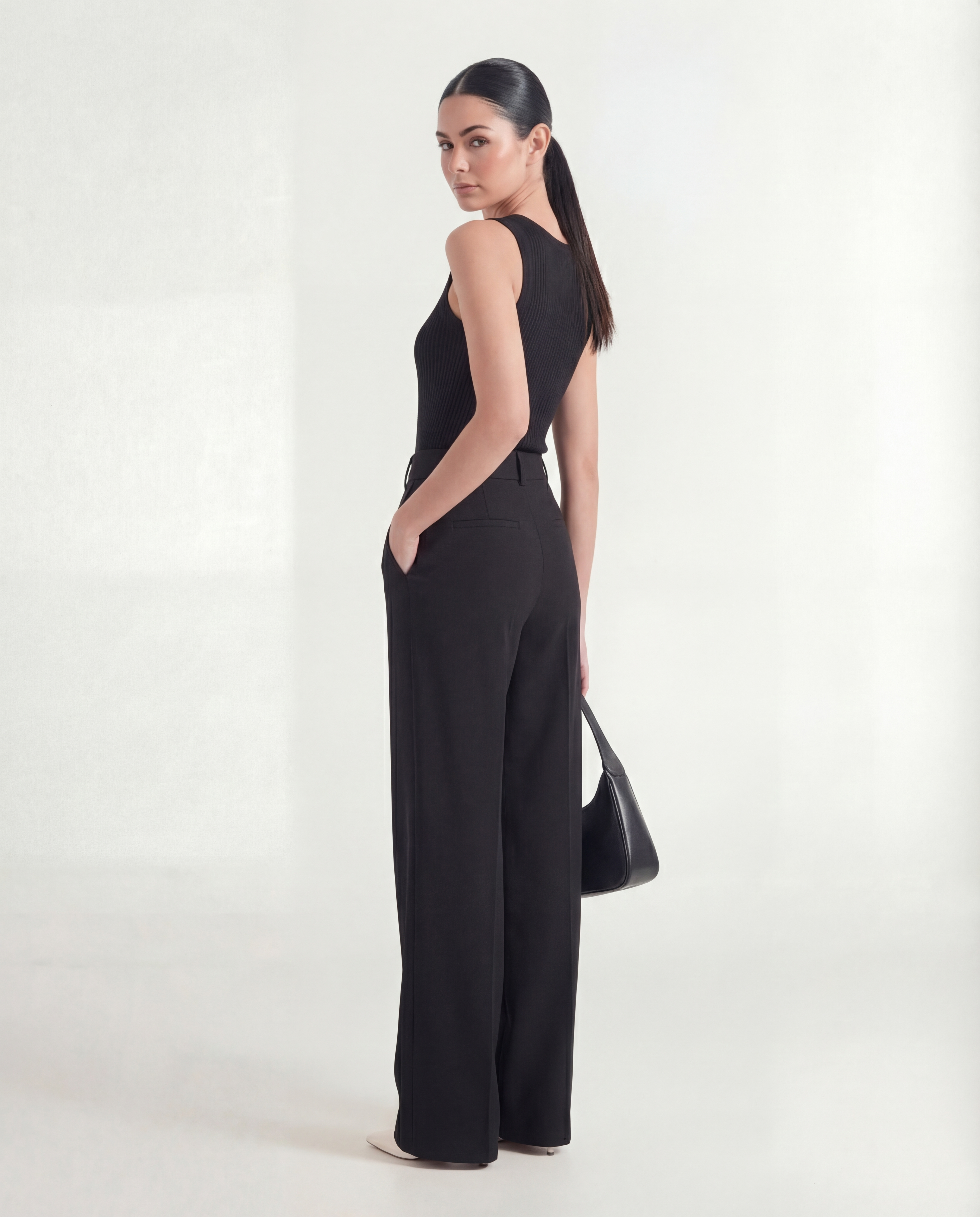 Featuring a high waist and straight-leg cut, Élan balances structure and softness — making them equally suited for elevated daytime looks or understated evening wear. Minimal in design yet rich in texture, these trousers are a timeless wardrobe essential built to last across seasons.