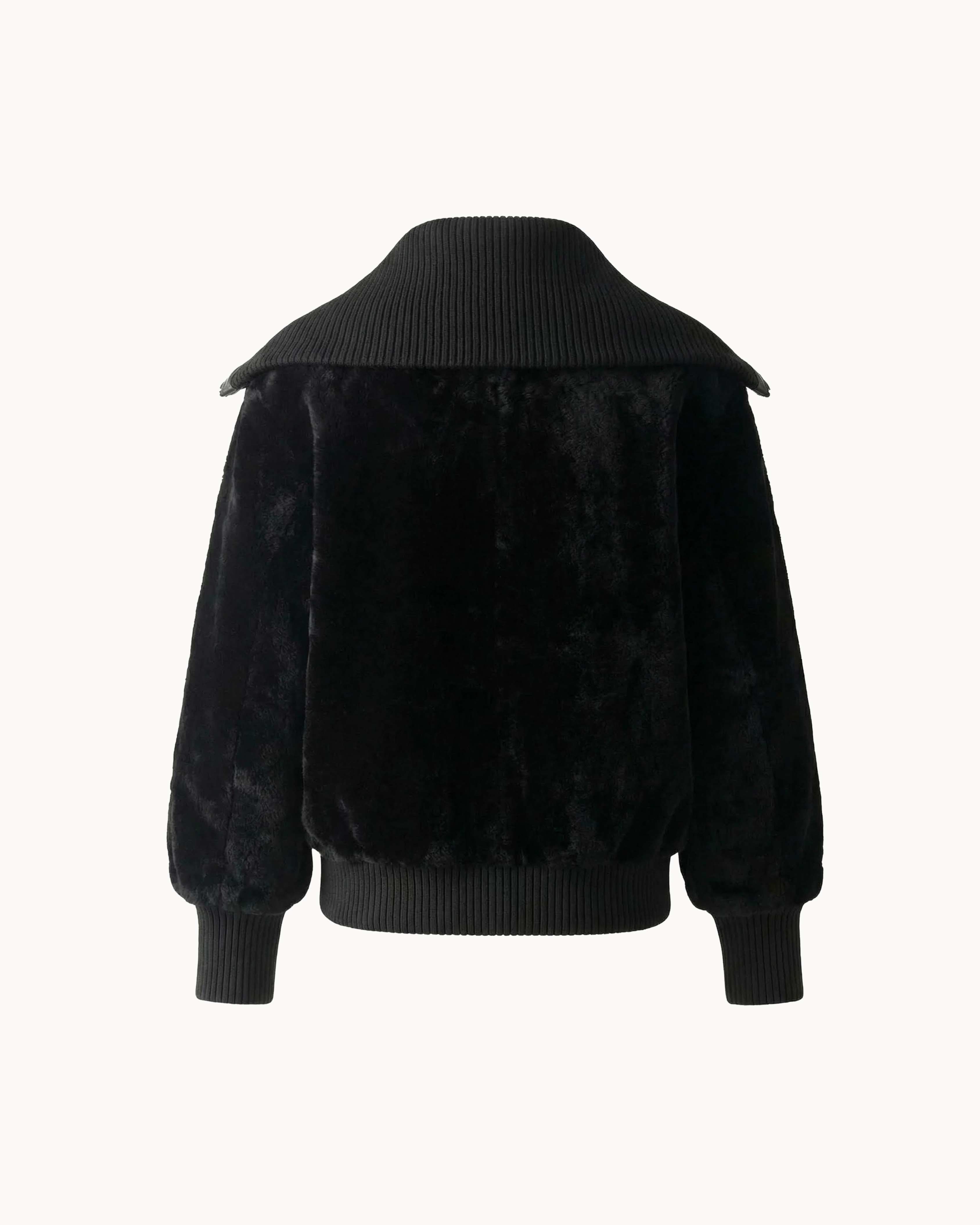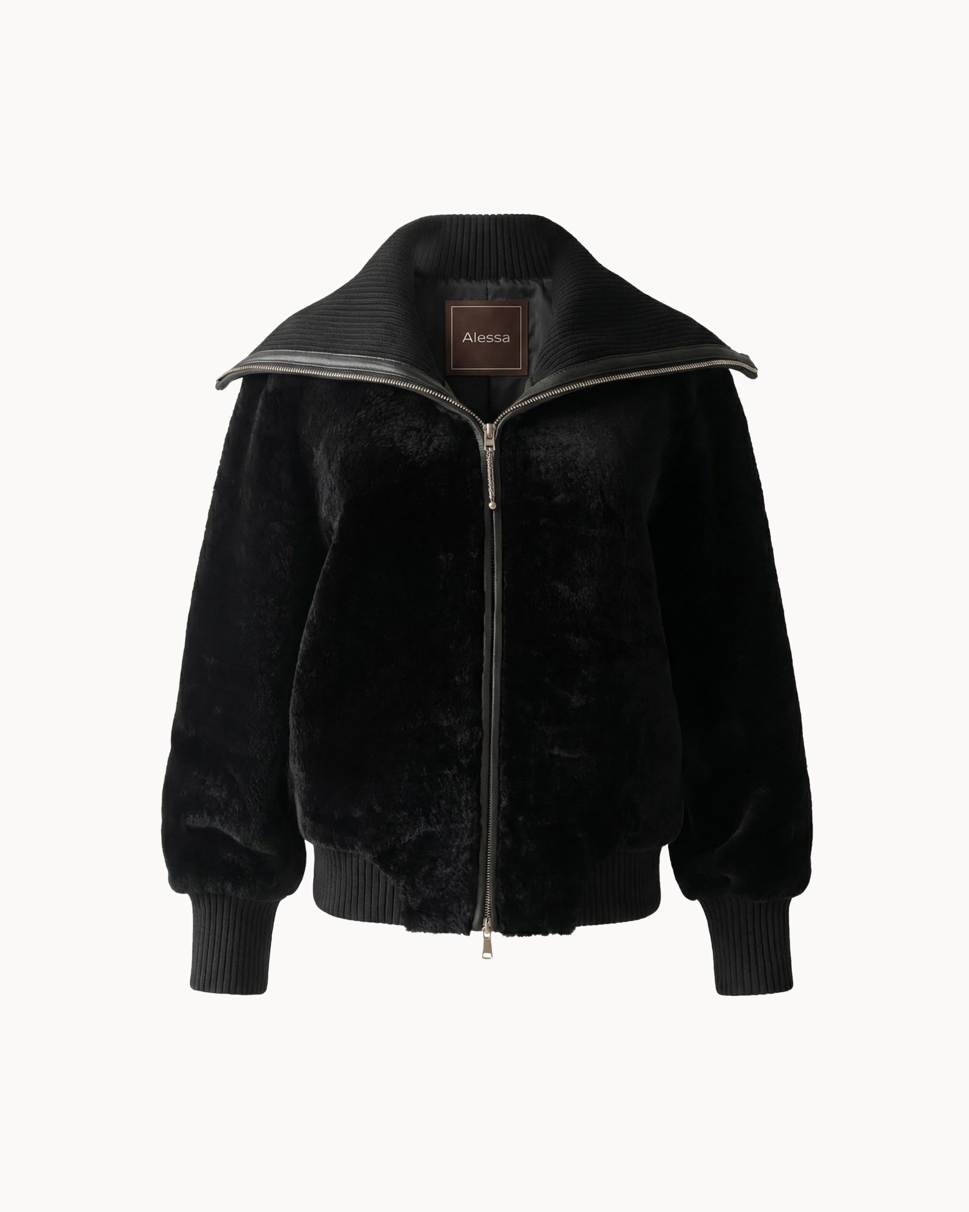 The Alessa Nocturne Shearling Jacket is crafted from premium shearling, offering natural warmth, softness, and durability. Defined by its oversized collar and cropped silhouette, the jacket balances strength and refinement with effortless ease.