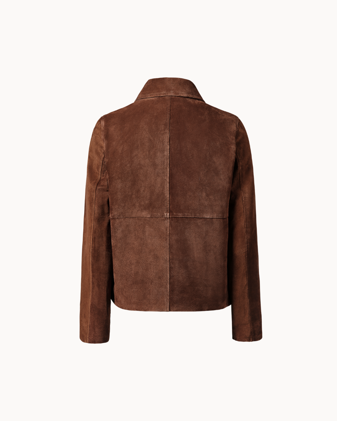 The Forma Suede Jacket is defined by clean structure and soft depth. Crafted in brushed suede with a rich warm brown tone, its minimalist silhouette is balanced by oversized patch pockets and a sharp collar. Fully lined in smooth satin, it offers effortless layering with a refined finish. A modern essential rooted in quiet luxury.