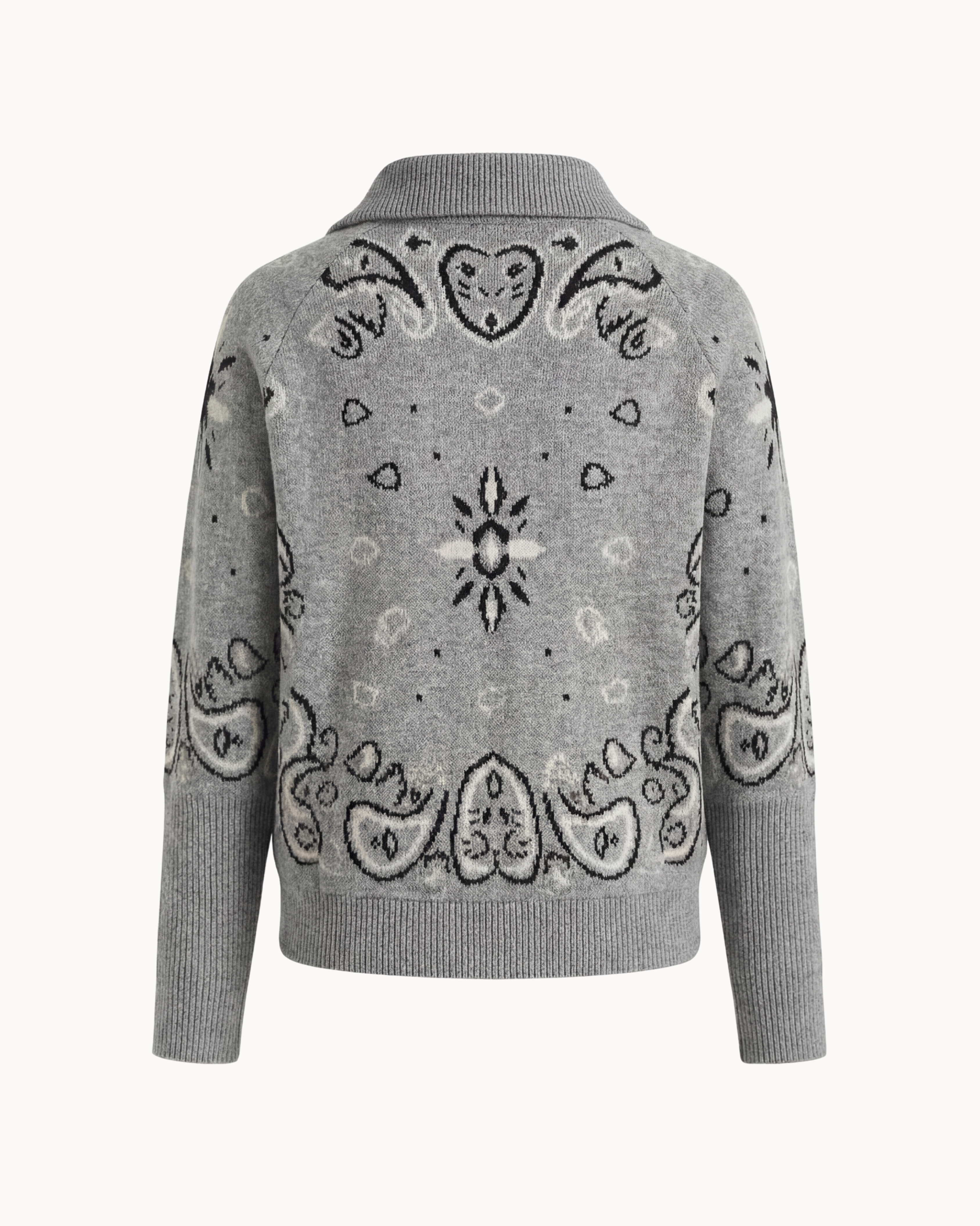 Inspired by classic bandana motifs, the Adelé Heritage Knit blends heritage design with modern elegance. The zip-up cardigan is crafted with detailed intarsia knitting that creates a refined yet relaxed expression.