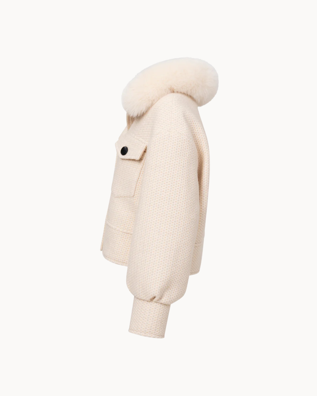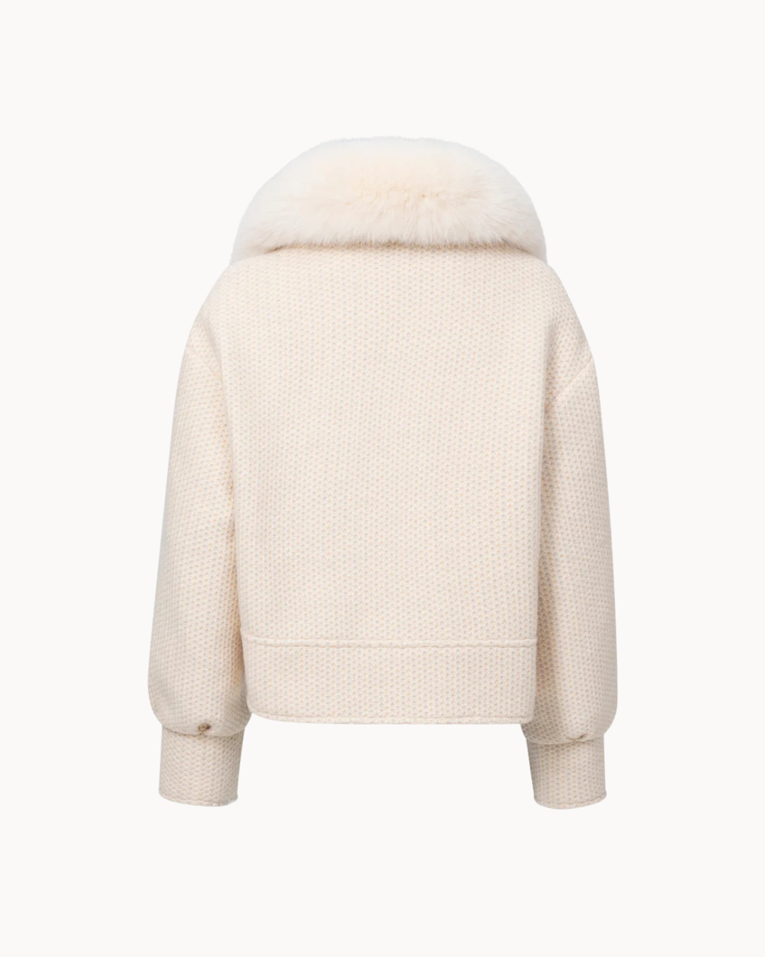 The luxurious, detachable premium fox fur collar adds a sophisticated touch, allowing you to effortlessly adapt your look for different occasions. With its short length and oversized fit, this jacket is perfect for everyday wear—especially during the mild days of spring.