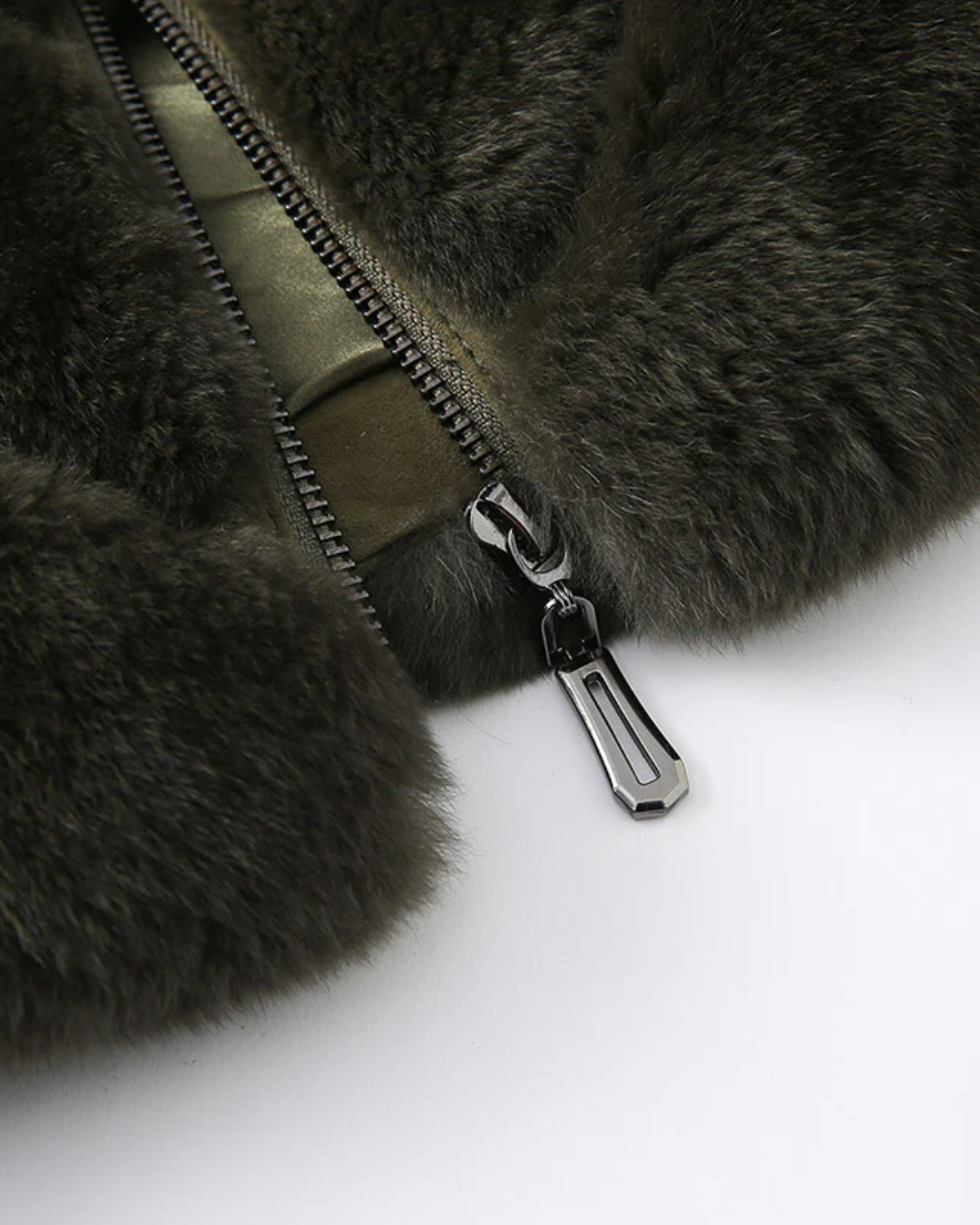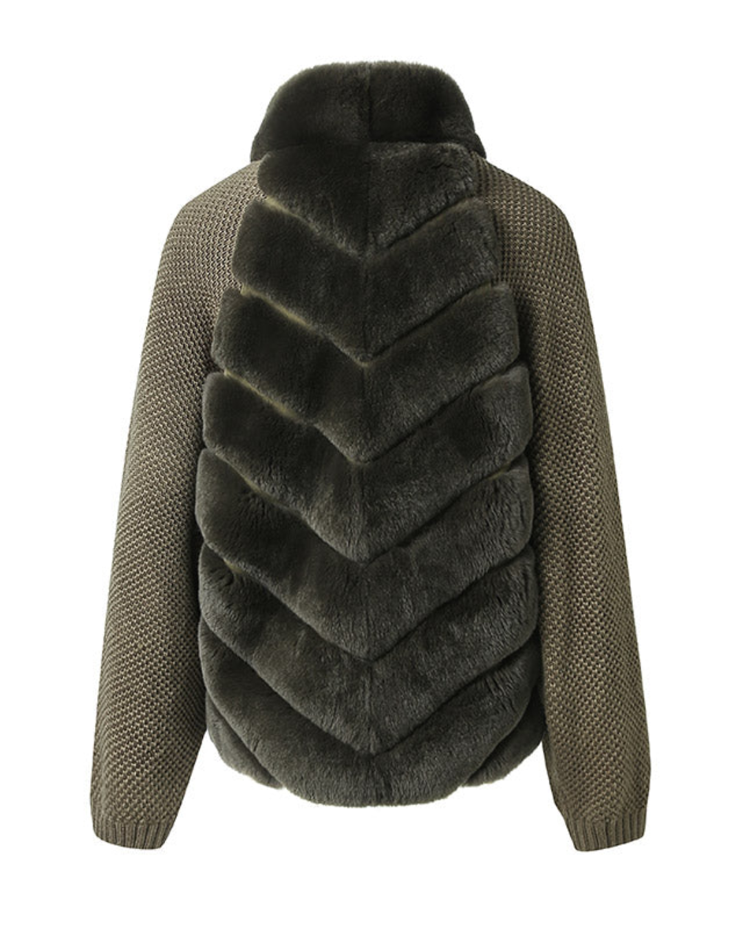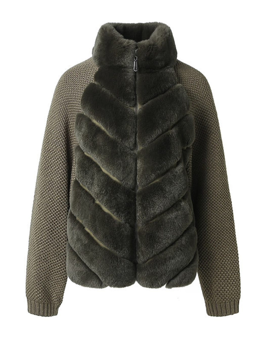 Wrap yourself in refined comfort with the Cenya Fur Jacket, a statement piece that balances plush luxury with effortless versatility. Crafted from plush khaki Rex Rabbit Fur in deep khaki and complemented by textured knit sleeves, Cenya offers a modern play on contrasts.