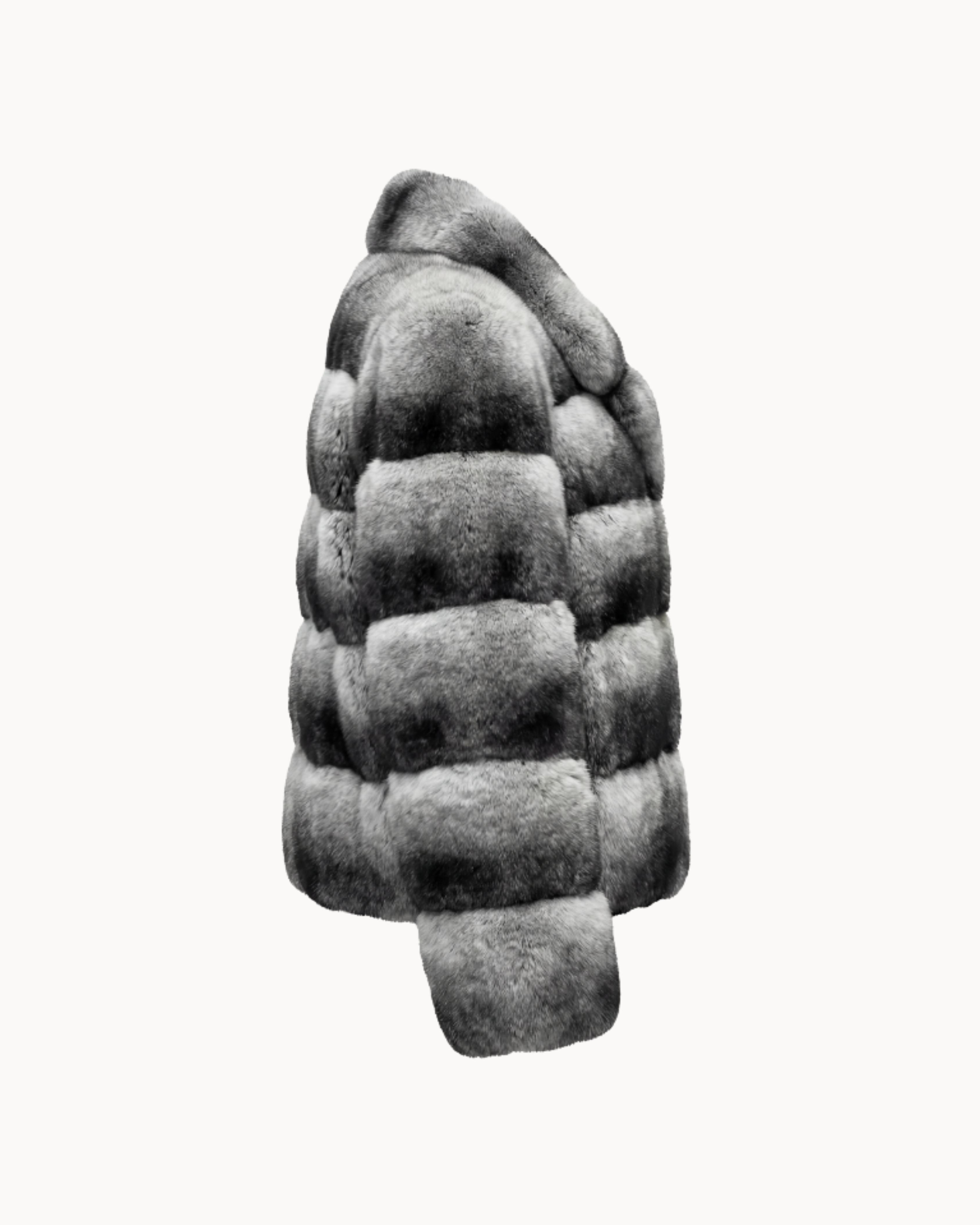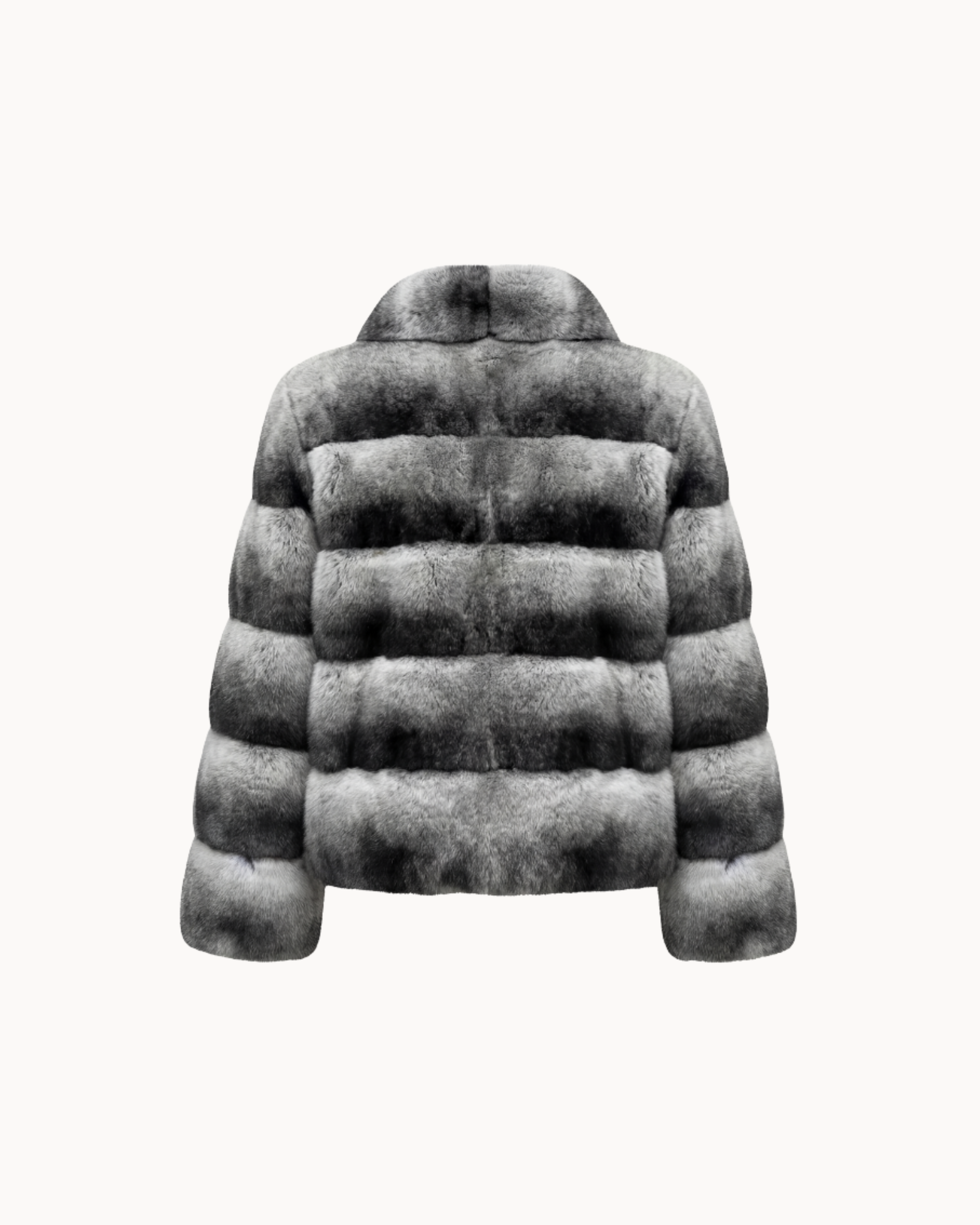 A bold statement piece handcrafted by skilled artisans using 100% genuine chinchilla fur, renowned for its exceptional density, unparalleled softness, and naturally luxurious sheen. Considered one of the rarest and most exquisite furs in the world, chinchilla offers a feather-light feel with extraordinary warmth.