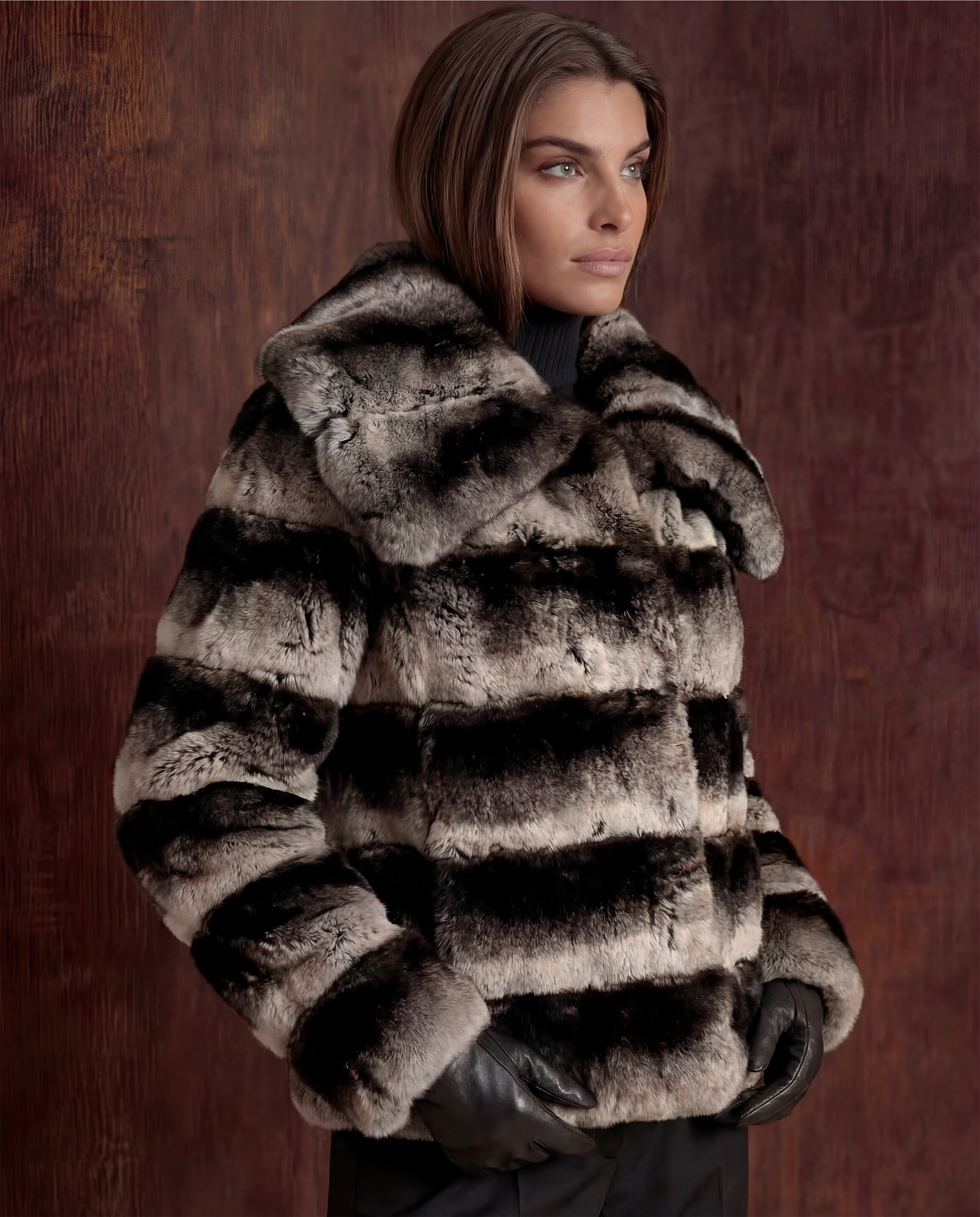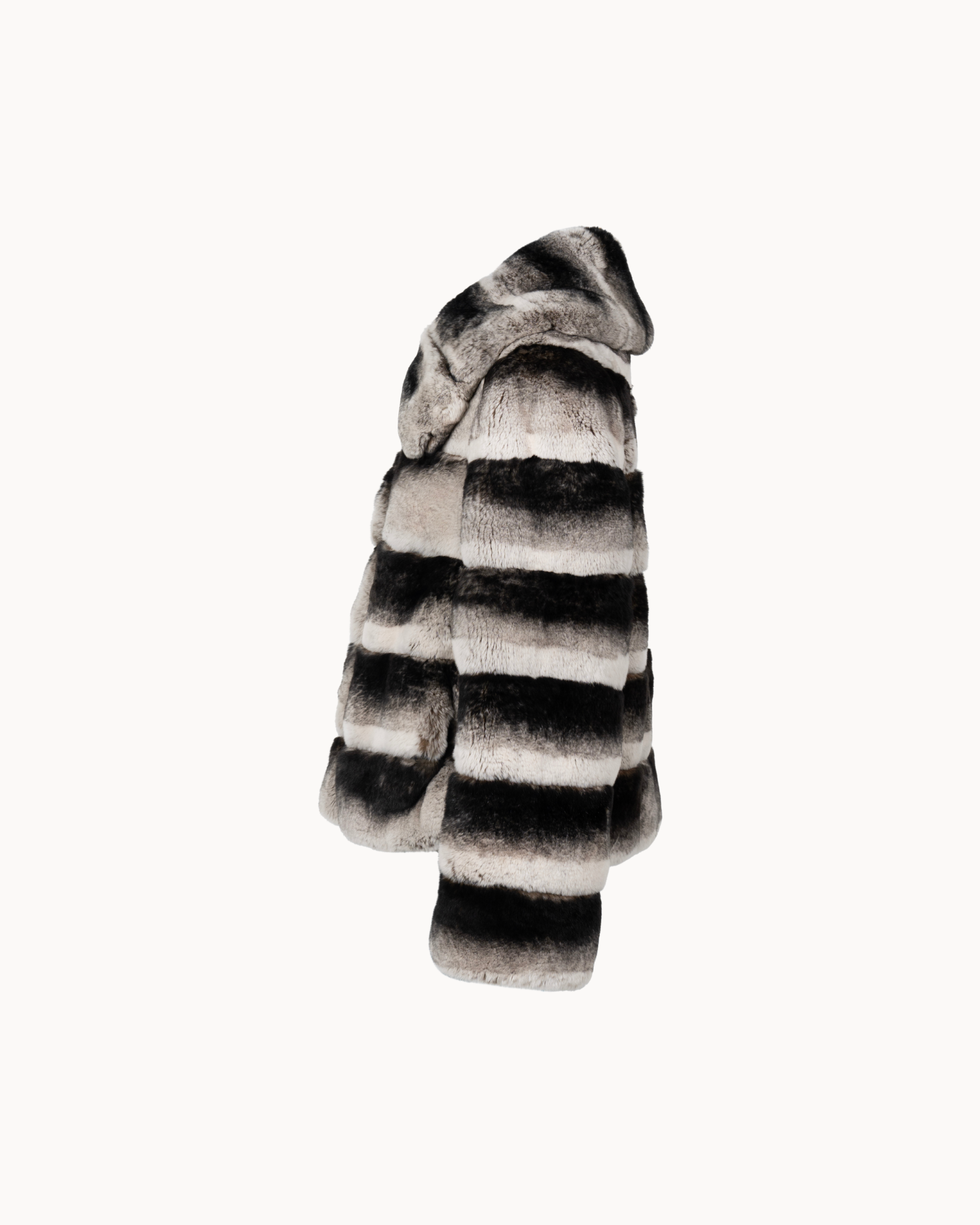 100% Genuine Rex Rabbit Fur with a premium silk-blend lining. Professional fur clean only.