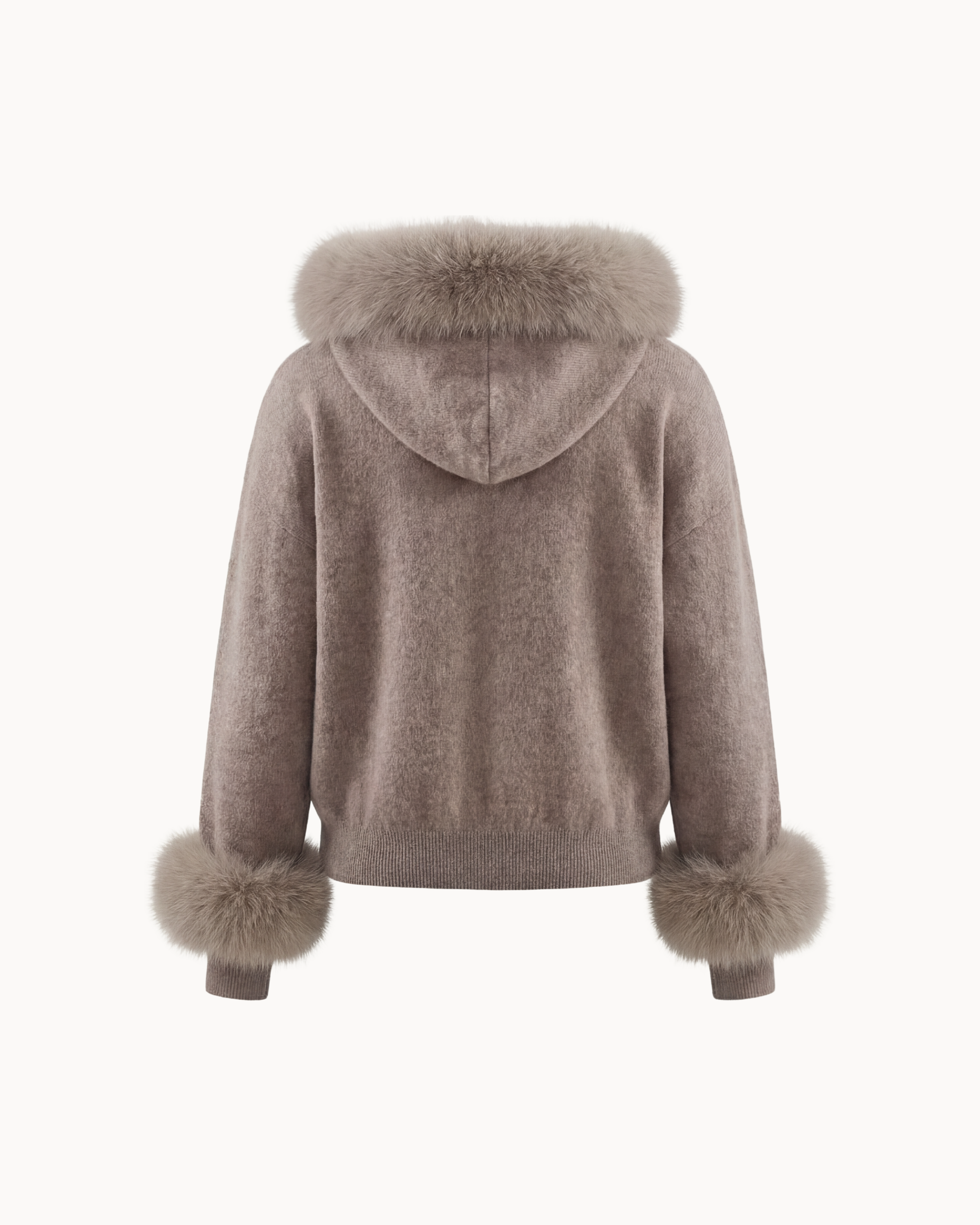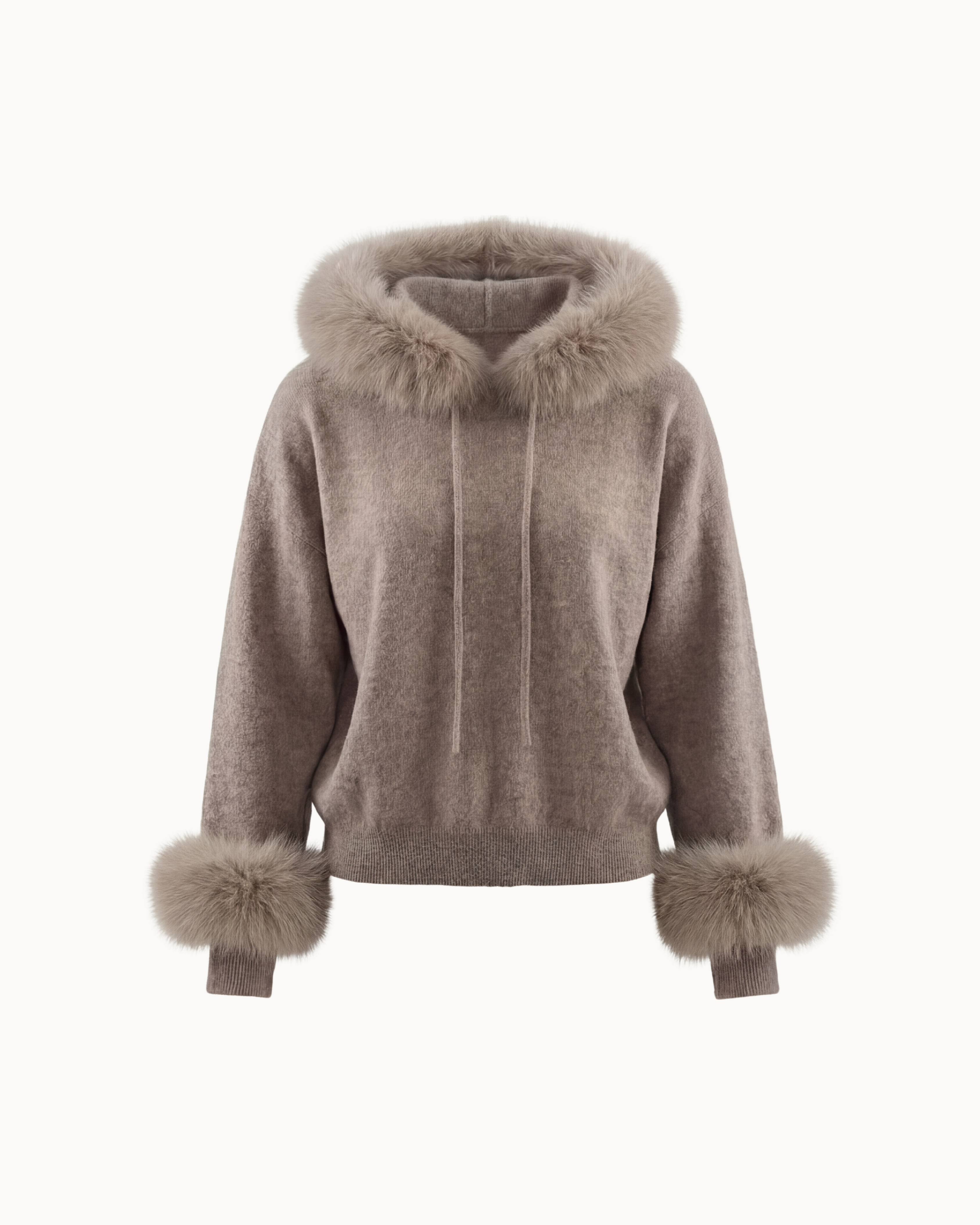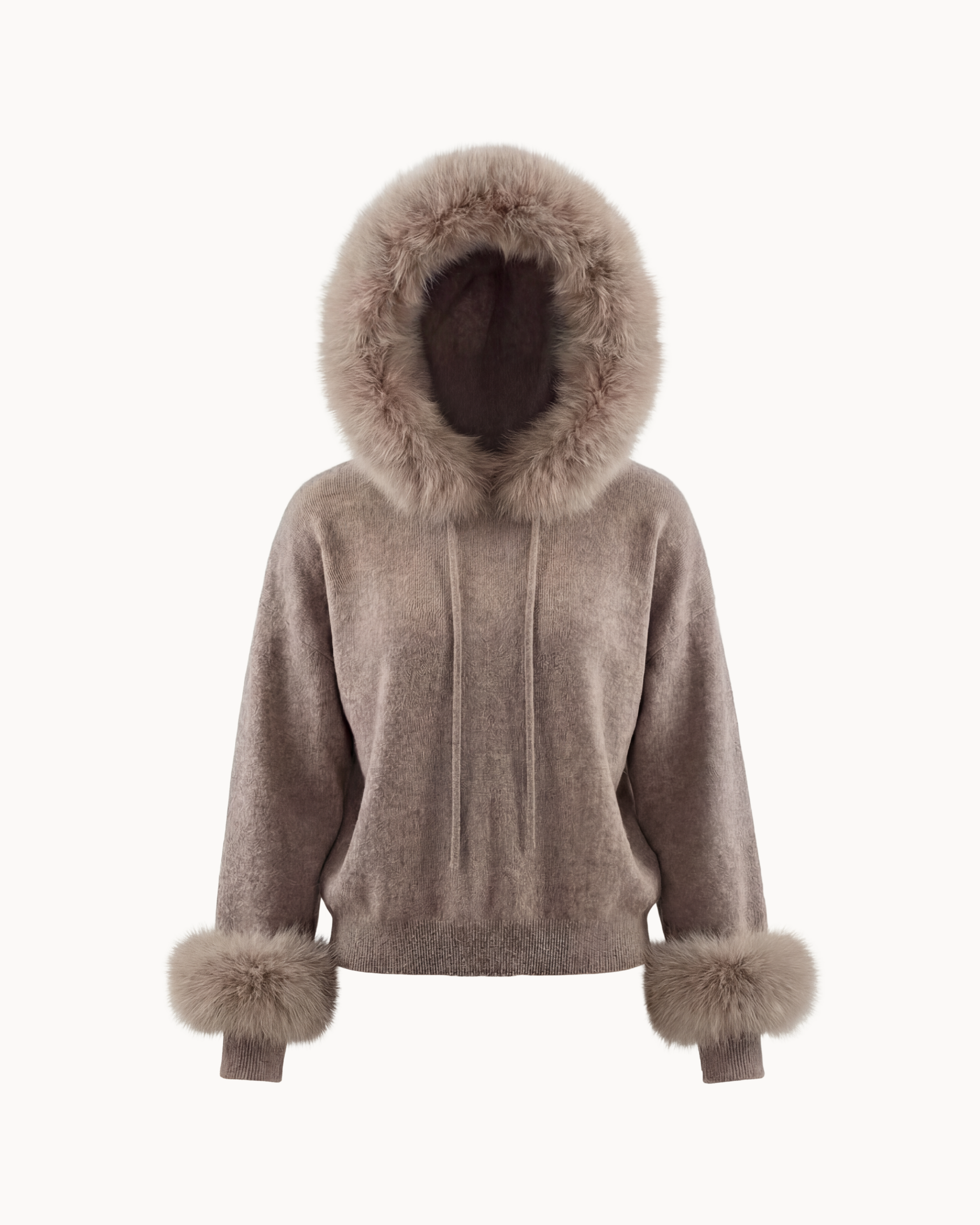 Refined with a statement detachable collar made from genuine fox fur, this hoodie exudes exclusivity. For an added touch of luxury, it also features two removable fur cuffs at the sleeves, allowing you to customize your look to suit any occasion. Thanks to its thoughtful design, you can easily switch up your style by wearing it with or without the fur details.