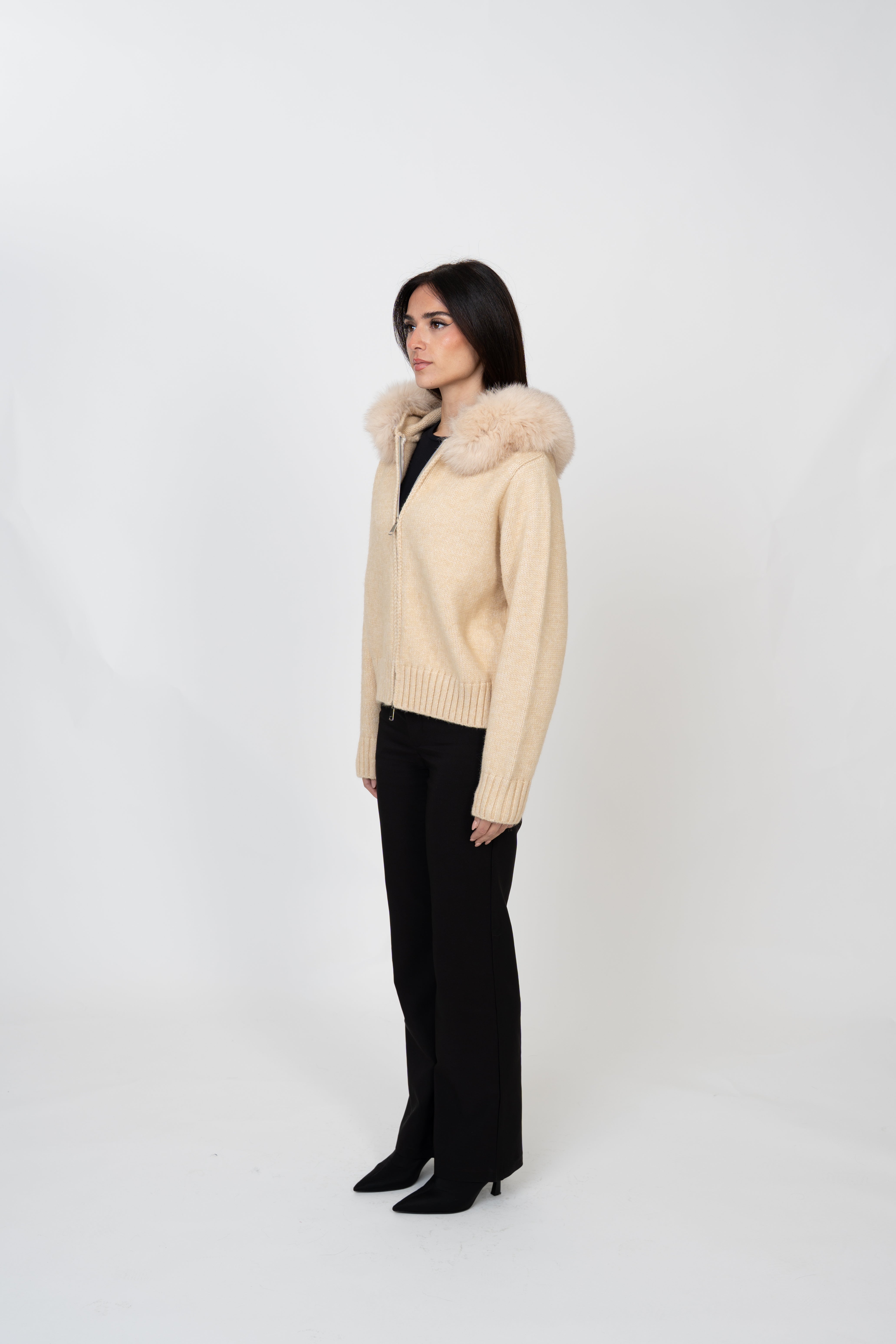 This luxurious jacket is the perfect balance of warmth and style. Crafted from an exclusive wool blend, it offers both comfort and durability, ideal for cool days and elegant layering styles. Its classic brown/beige shade and soft texture make it a versatile addition to your wardrobe, whether you’re dressing up for a night out or keeping it casual.
