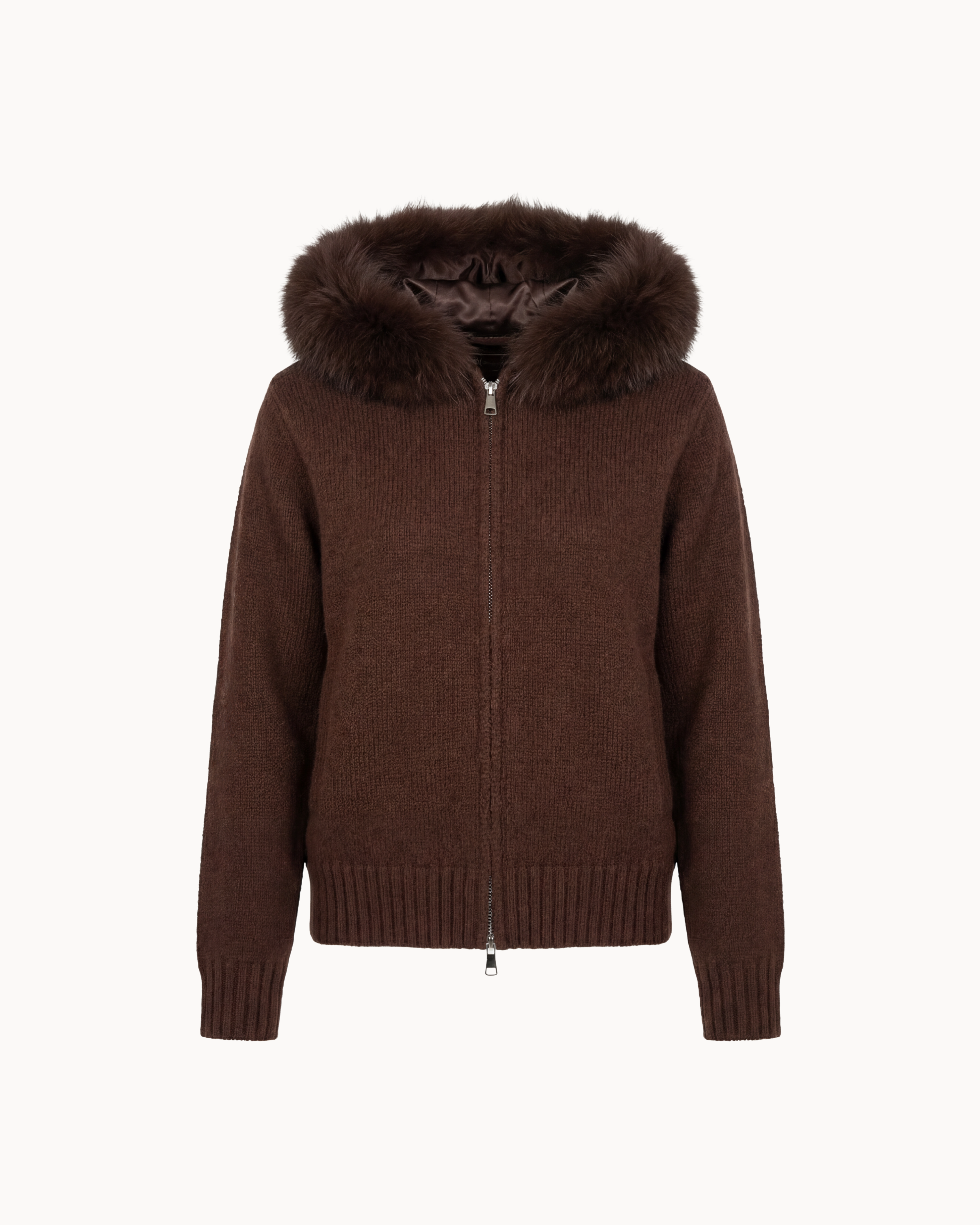 Fur Jacket Satin - Dark Brown
