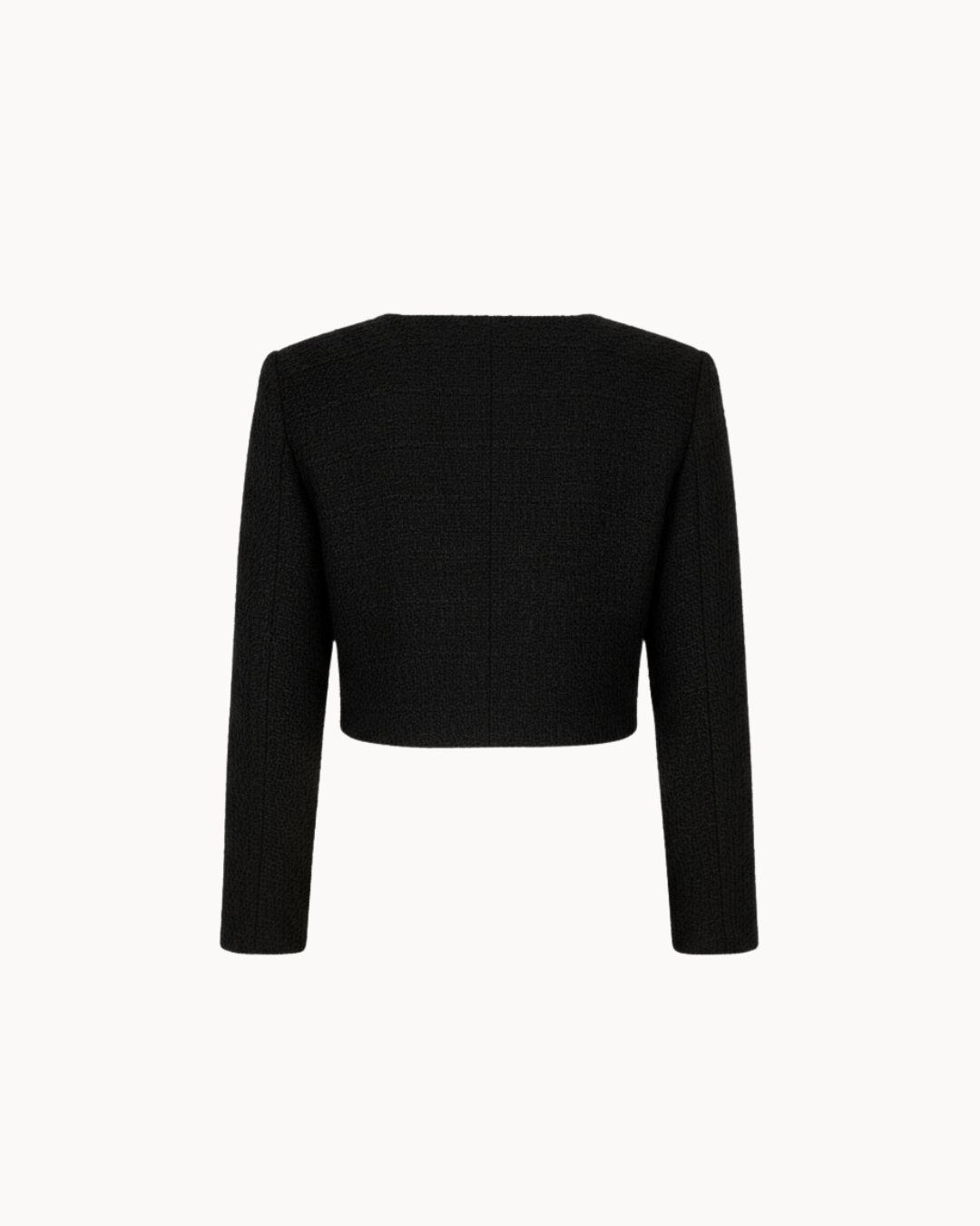 A modern interpretation of classic Parisian tailoring. Crafted from premium tweed, it features a cropped silhouette that accentuates the waist and structured shoulders for a confident, feminine shape.