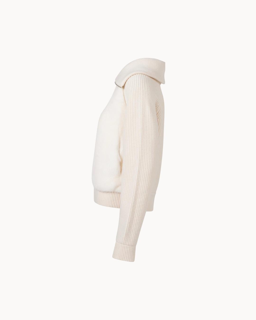 The Lumière Mink Cardigan blends plush mink fur with soft wool knit, creating a refined, lightweight layer that offers warmth without bulk. A modern, luxurious essential for effortless everyday elegance.