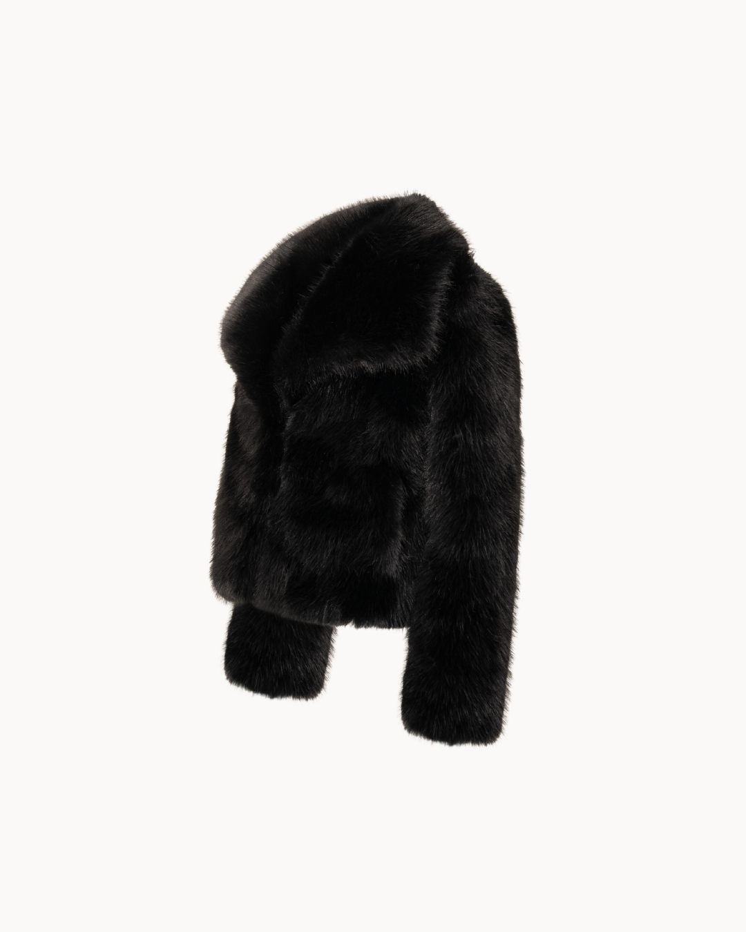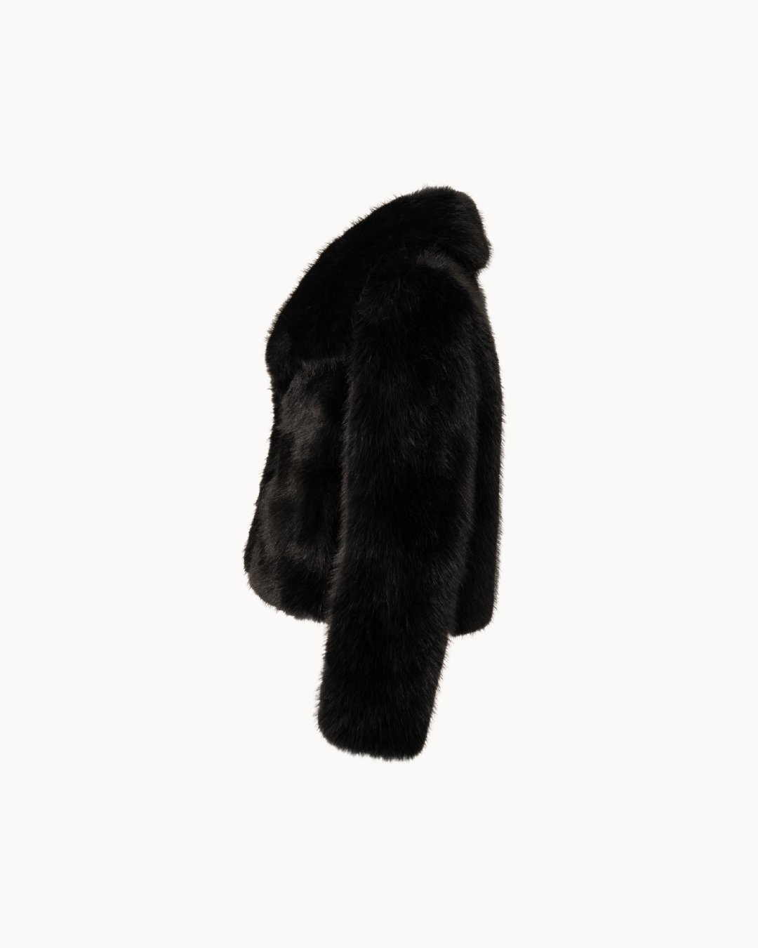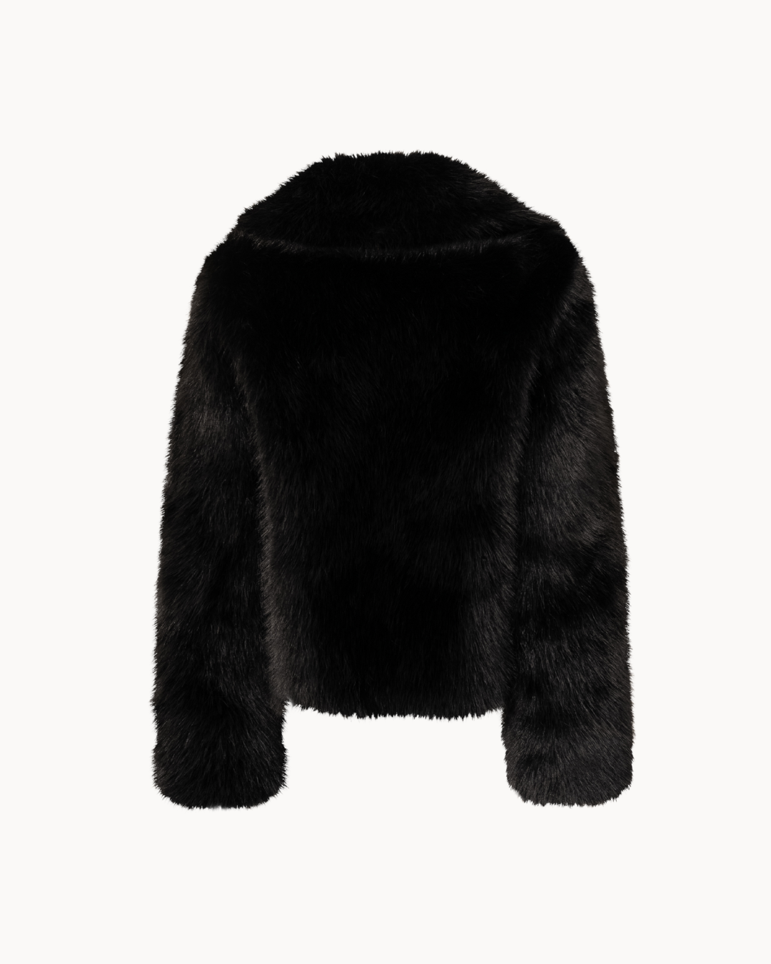 Stay warm and stylish with the Ophelia Faux Fur Jacket. Made from soft, high-quality faux fur, it feels cozy while looking elegant. The classic black design makes it perfect for both everyday wear and special occasions.
