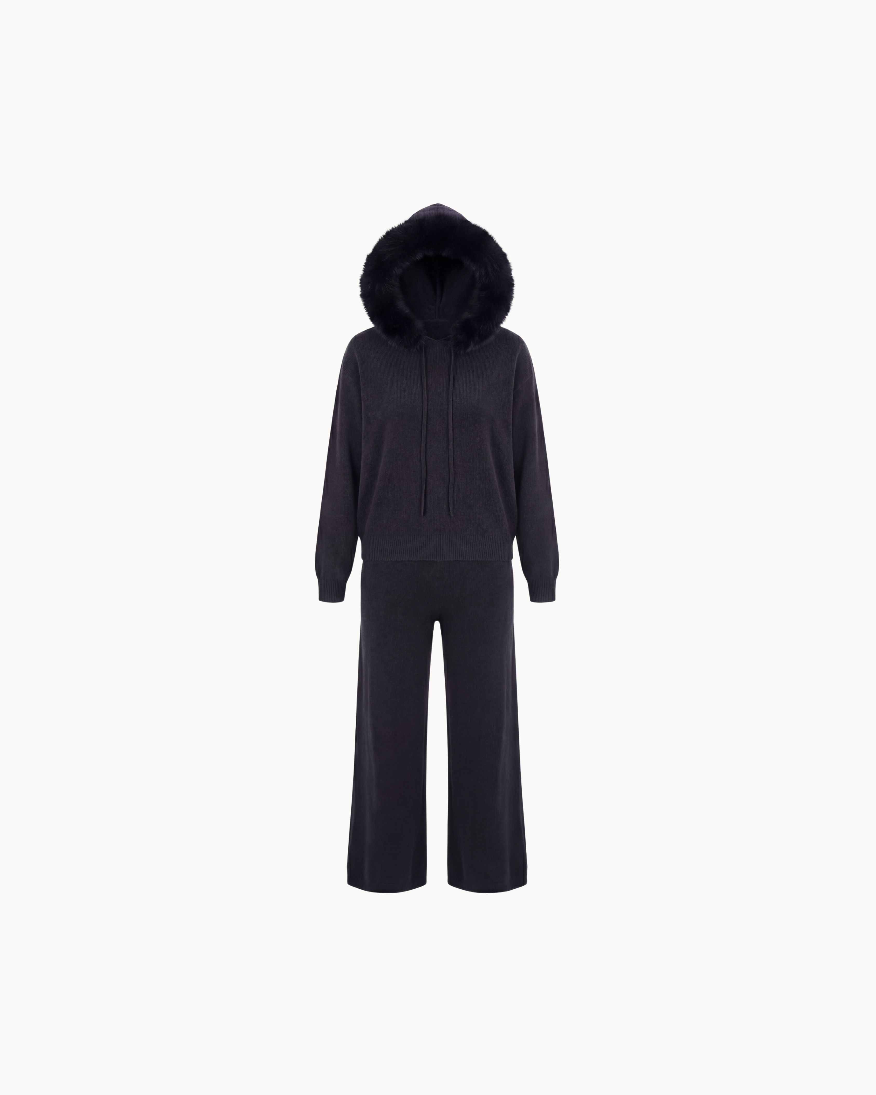 Crafted from a soft, high-quality wool blend, this elegant knit set offers both warmth and flexibility—ideal for cooler days and effortlessly sophisticated everyday wear. The relaxed fit and wide-leg trousers create a refined silhouette, combining freedom of movement with a timeless aesthetic.