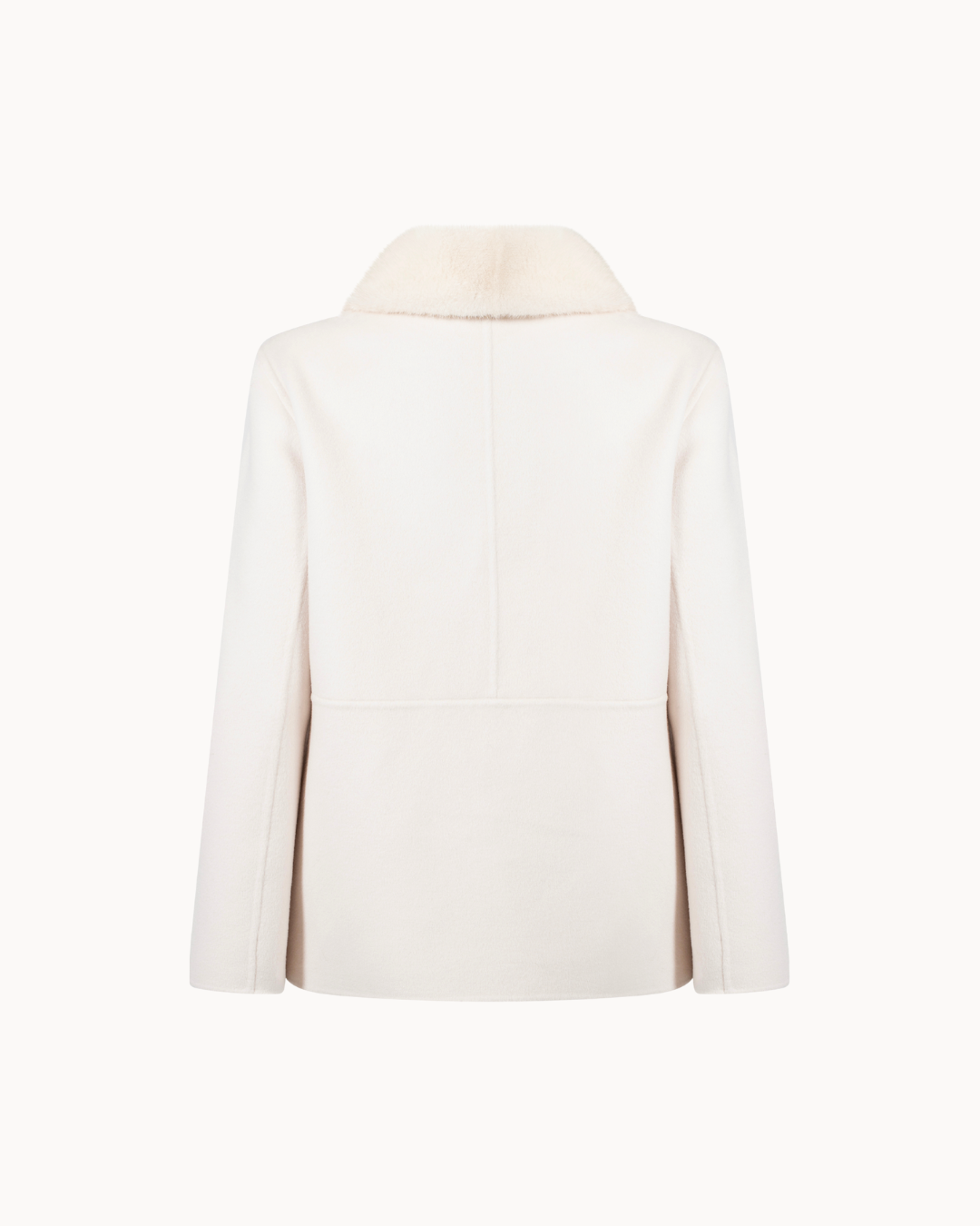 Crafted from a luxurious blend of wool and cashmere, The Montreux Jacket embodies understated elegance. Its soft ivory tone is complemented by a sumptuous mink fur collar, adding depth and warmth to its refined silhouette. A timeless piece designed to capture quiet sophistication— where comfort meets couture.