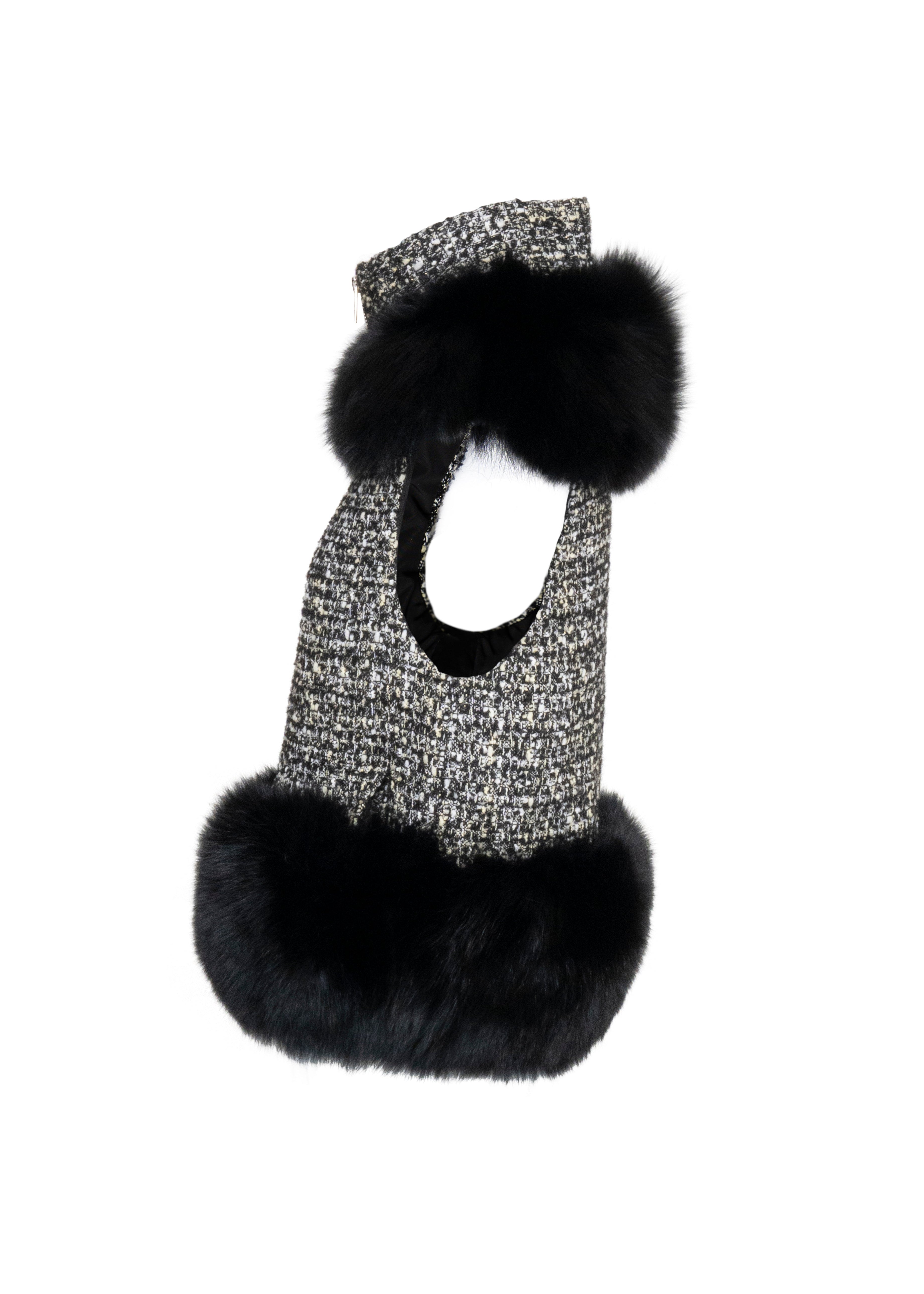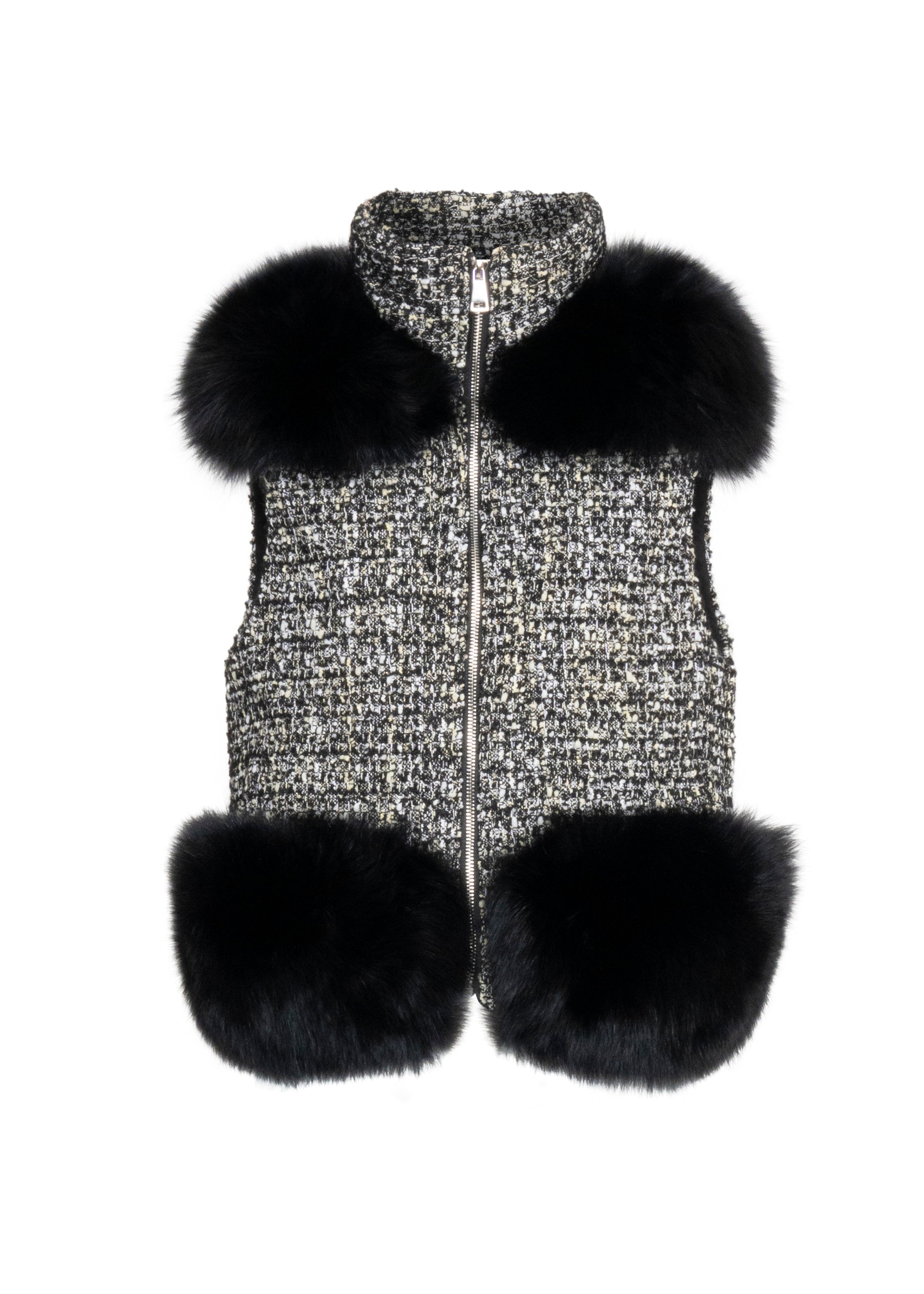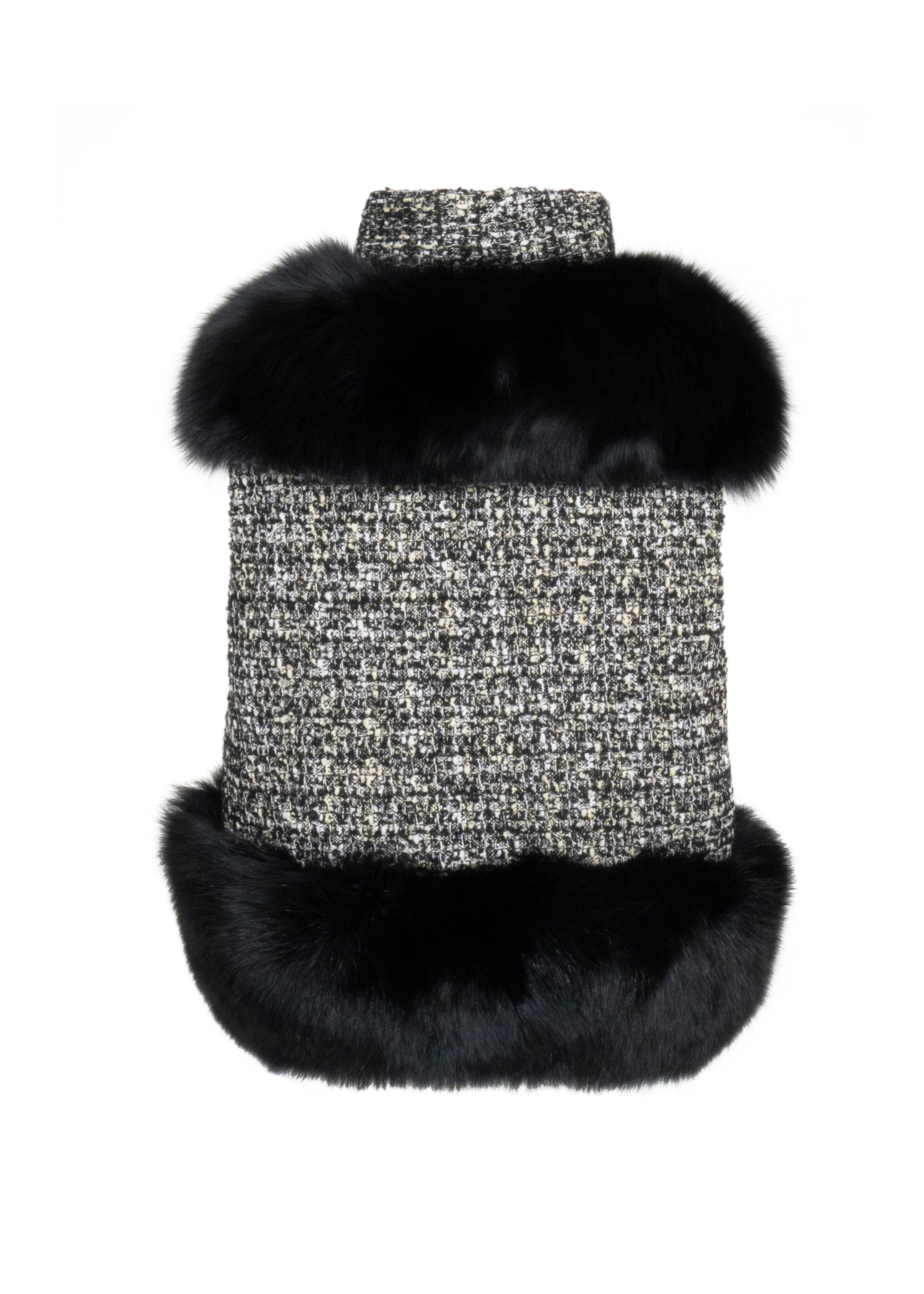 This exclusive vest blends timeless tweed with a touch of luxury.